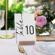 Casamento Branco Negro De Caligrafia Rotulada Elegante. A mesa é definida em um script rotacionado à esquerda e o número da tabela à direita. Personalize facilmente o número e adicione cada número ao seu carrinho separadamente à medida que você o altera. O mesmo design está do outro lado e será atualizado simultaneamente à medida que você fizer a alteração no número.