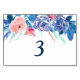 Aqui está um bonito cartão de mesa de casamento que usa o azul como uma cor primária, e o embeleza com toques de cor rosa e pêssego. A borda de cima é uma imagem buquê de pêssego e rosa azul, com flores violetas rosa complementares, azuis e folhas aqua. Abaixo da borda floral está o número da tabela em azul. Tudo é colocado num fundo branco de casamento. A parte traseira da placa é idêntica. Certifique-se de ver os produtos de casamento correspondentes, incluindo convites, em nossa loja.