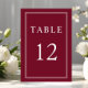 Cartão de Número de Mesa de Casamento Clássico Elegante Formal Burgundy Vermelho