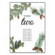 Um belo design de pinheiros com galhos de pinheiros rústicos, cones de pinheiros e agulhas de pinheiros. Um elegante número da mesa de casamento com verde ideal para qualquer tema de casamento. Os convites de casamento e outros artigos de papelaria também estão disponíveis. Personalize o número e os nomes de convidado e adquira cada número do mesa individualmente de acordo com quantos números de tabela você precisa.