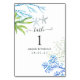 Tendy marinho e tema de praia branco cartões de número de mesas de casamento em praia com samambaias, algas e estrelas-do-mar projetados para serem rápida e facilmente personalizados de acordo com as suas especificidades de evento.