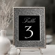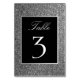 Luxuoso, moderno, elegante número de mesa de casamento preto e com brilho prateado.
