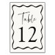 Adicione um toque de na moda à sua celebração de casamento com estes cartões de mesa de casamento do Modern Wavy Frame! O design retrovisor exibe "Mesa" em um script preto manuscrito com o número da tabela mostrado abaixo. Uma borda ondulada preta rodeia o número da tabela contrastando com um fundo de creme leve. O design repete atrás. Para solicitar as placas de mesa: adicione cada número ao carrinho individualmente e faça check-out quando terminar. Não faça o pedido por quantidade ou você receberá múltiplos do mesmo número.