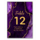 Esta elegante e glamourosa placa de casamento com números de mesa mostra um fundo de mármore roxo e agitado com sotaques de ouro falso. O texto combina o script manuscrito e as fontes sans serif modernas para um aspecto elegante e sofisticado. Isso será perfeito para outono e casamentos no inverno.