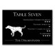 Um número de mesa engraçado e único. Perfeito para amantes de animais e cães, este número de mesa monocromático preto e branco é parte de uma coleção de várias raças de cães. O cartão indica o número da mesa, seguido por "Os Dálmatas", e uma imagem delineada em branco de um dálmata. Como uma piada sobre a personalidade dos convidados, quatro características do cão são listadas, incluindo amizade com estranhos, potencial de baba, tendência a latir e uivar e brincalhice, ao lado de uma classificação de cinco estrelas. O cartão de mesa é adequado para casamentos, festas, quizzes ou qualquer outro evento que exija um plano de assentos.