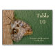 Bonito borboleta castanha descansando sobre uma árvore contra um elegante plano de fundo verde natureza personalizada para a mesa de casamento. Clique em Personalizar para alterar o tamanho, o estilo e a cor da fonte. Esta imagem está disponível em muitos produtos da minha galeria. Visite o tesouro dos olhos sorrindo para ver mais fotografias de flores e natureza e cartões e presentes de arte digitais.