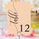 Mande seus convidados para os assentos deles com os números de mesas de casamento de pêssego elegantes. Apresentando uma design minimalista com a caligrafia moderna, esses números de tabelas adicionam um toque de sofisticação à sua recepção de casamento. O fundo suave e a tipografia elegante e limpa garantem uma leitura fácil e ao mesmo tempo melhoram a decoração do casamento. Perfeito para qualquer tema de casamento, esses números de tabelas ajudam a criar um arranjo de assentos refinado e organizado para seu dia especial.