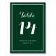 Complete a decoração da mesa do seu evento com este cartão de números de mesa personalizável. Ele apresenta caligrafia moderna e tipografia simples. As cores são verde floresta e branco, perfeitas para casamentos de inverno e ao ar livre, chá de noiva, chá de bebê e outros eventos. Personalize adicionando nomes e outros detalhes do evento. Esta é uma parte de uma coleção de casamento.