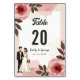 Este elegante número de mesa floral de aquarela é perfeito para um casamento moderno. A design romântica apresenta uma elegante estrutura floral de aquarela com uma ilustração noiva e noiva e caligrafia preta sobre fundo branco.