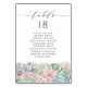 Adicione um sotaque boho ao seu evento com estas placas de mesa personalizáveis. Apresenta uma terra de aquarelas de suculentes cor-de-rosa, verdes e azuis pastel. Este cartão de mesa suculento é perfeito para casamentos de verão, graduações, aniversários, chás de fraldas e muito mais.