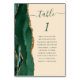 A borda esquerda desta elegante e moderna carta de números da mesa de casamento apresenta uma esmeralda verde aquarela agate borda com falsa brilho dourado. A palavra "mesa" aparece em um guião verde de escrita manual em um fundo bege de champanhe. Adicione os nomes dos seus convidados que estão atribuídos a cada mesa.