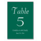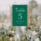 Guie seus convidados de recepção de casamento para a mesa com este simples cartão de número de tabela de estilo que contém uma inscrição branca e estilizada em um plano de fundo verde-esmeralda de tendências. Design está em cada lado da placa. Edite seu cartão para alterar o número da tabela, os nomes dos casais de casamento e a data. Cartões de pedido separados para cada número de tabela.