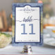 Número de Mesa Náutico Azul e Dourado | A elegante suíte de convites de casamento em aquarela azul marinho e dourado da Nautical Boutique Co. e os designs de planejamento de casamento são baseados em estilo tradicional e apresentam elementos modernos. O design é adequado tanto para casamentos náuticos quanto para outros eventos formais, como bailes de clubes de iate. #Náutico #Casamento #Eventos #NúmeroDeMesa