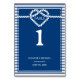 Número moderno da mesa náutica de náutica, com um nó de coração branco, quimicamente romântico, exibia dentro marinho borda azul com sotaques e faixas de corda. Tipografia branca. Esquema de cores azul e branco do marinho clássico. Altere o número de cada um de que você precisa e solicite separadamente...1,2,3,10,20.