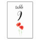 Números elegantes e modernos de papoilas vermelhas de aquarela flores de mesa. Perfeito para o seu casamento. Design pintada à mão pela Monika Howarth.
