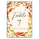 Uma bela queda de cor da água em negrito deixa decorar a fronteira deste número da mesa de casamento do boho outono. Ótimos tons de vermelho, laranja e marrom formam as bordas botânicas deste creme ao ar livre para suas mesas. Um cartão boêmico moderno com cores brilhantes e divertidas.