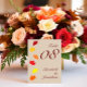 Casamento de folhas de outono. Folhas de carvalho e bordo de outono contra um fundo marrom claro rústico
