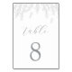 Guie seus hóspedes com um toque de beleza refinada usando este design de número de tabela personalizado, mostrando botânicos desenhados à mão. Disponível em tons de preto e branco ou cinza mole em negrito, a folhagem em cascata cria um na moda e um sotaque orgânico para cada mesa. Esta elegante trabalho de arte botânica acrescenta um elemento decorativo único, perfeito para melhorar o ambiente da sua recepção.