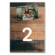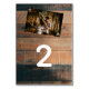 Este design apresenta um fundo rústico em placas de madeira com duas fotos de casal pessoal. O fundo marrom-rústico de madeira é complementado pelo texto branco e pela sua fotografia pessoal, que é mostrada como segura no fundo de madeira com parafusos ruidosos. Os tons castanhos do grão de madeira criam um celeiro rústico como se sentisse no jardim. Elegante design da mesa de casamento com elementos modernos. Os convites de casamento e outros artigos de papelaria também estão disponíveis. Personalize o número e adquira cada número mesa individualmente de acordo com quantos números de tabela você precisa.