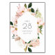 Cartões de número de mesa de casamento floral rosa suave simples e elegante.
