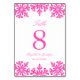 Cartões de número de mesa para casamento de inverno com floco de neve rosa