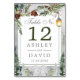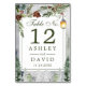 Número Da Mesa De Casamento De Lanterna Botânica Da Árvore Rústica De Inverno. Lindos números elegantes de casamentos no inverno com lanterna de neve com galhos de pinheiros botânicos e pinheiros. Esta design de casamento moderna personalizada pode ser facilmente personalizada com os seus próprios detalhes de casamento.
