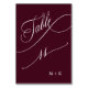 Numeração De Mesa Casamento de Luxury Calliografia Burgundy Número 1