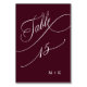Numeração De Mesa Casamento de Luxury Calliografia Burgundy Número 1