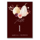 Este número da mesa de núpcias apresenta branco de aquarela e abóboras amarelas adornadas com burgundy, maroon e flores cor-de-rosa pinceladas sobre as folhas do outono. Para uma personalização mais avançada deste design, clique no BOTÃO FERRAMENTA DESIGN AZUL acima
