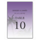 Elegante número da mesa de casamento de praia com design de palmeira tropical em um fundo roxo brilhante com elegante roteiro e tipografia moderna. O roxo do pôr do sol desaparece sobre um fundo branco. Basta adicionar seus detalhes de casamento a esta mesa de casamento da praia na moda tropical. Desenvolvido exclusivamente para você pelo Happy Dolphin studio.