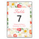Número bonito da mesa de casamento com tulipas, narcisos e outras flores. Perfeito para um casamento de primavera ou verão. As palavras podem ser alteradas para se adequarem aos seus próprios detalhes ou requisitos