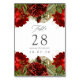 Cartões de números de tabela de rosas vermelhas de burgundy com sotaque de ouro.