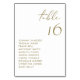 Placa de números de tabela moderna com script manuscrito preto e tipografia minimalista. Personalize adicionando seus detalhes. Esta mesa de ouro é perfeita para casamentos, chuveiros de noiva, chuveiros de bebês e outros eventos.