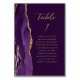 A borda esquerda desta elegante e moderna placa de número da mesa de casamento apresenta uma cor d'água púrpura e borda agitada com falso brilho dourado. A palavra "mesa" aparece em um guião de escrita manuscrita dourada sobre fundo de ameixa. Adicione os nomes dos seus convidados que estão atribuídos a cada mesa.