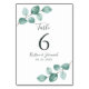 Estes cartões de mesa botânicos vão adicionar um toque de elegância às suas configurações de casamento. Este modelo de design apresenta números pretos acentuados com o eucalipto verde pintado à mão. Abaixo estão seus primeiros nomes no roteiro moderno e na data do casamento para personalizar os melhores desejos para seu casamento e casamento! Elaborado por ©Susan Coffey.