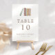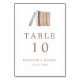 Cartões de números de mesas de casamento encantadores, perfeitos para um casamento de livros ou de temas de biblioteca. A design apresenta uma ilustração aquarela de livros em cores de tons de terra neutros. Adicione o número da tabela e personalize com seus detalhes em marrom escuro.