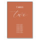 Uma bela design mostrando uma elegante tipografia de caligrafia com script em um fundo de laranja queimado em teracotta. Perfeito para quem ama designs modernos minimalistas. Um na moda e uma design de cartão de número da mesa de casamento com elementos clássicos. Os convites de casamento e outros artigos de papelaria também estão disponíveis. Personalize o número e adquira cada número mesa individualmente de acordo com quantos números de tabela você precisa.
