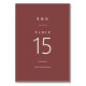 Simplesmente Na moda | Número da Mesa de Casamento Moderno da Borgonha. Este elegante número da mesa de casamento contém um texto branco moderno sobre o fundo da Borgonha.