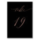 Estes cartões de mesa de casamento preto e rosa dourado minimalistas vão adicionar um toque de elegância às suas configurações de casamento. Este simples modelo de design apresenta um moderno faux rosa gold script que diz "Mesa 19". Por favor, veja a nossa loja I Love Weddingz para mais cartas de números de mesa neste conjunto. Os melhores votos para o seu casamento e casamento! Desenhada por Susan Coffey.