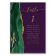 A borda esquerda desta elegante e moderna carta de números da mesa de casamento apresenta uma esmeralda verde aquarela agate borda com falsa brilho dourado. A palavra "mesa" aparece em um guião de escrita manuscrita dourada sobre fundo roxo. Adicione os nomes dos seus convidados que estão atribuídos a cada mesa.