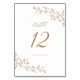Número da Tabela de Casamento Dourado Botânica do Ramo Folha Elegante. Número da Tabela de Casamento de Script de Caligrafia Elegante