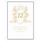 A crista branca e dourada desenhando o número da mesa de casamento. Edite este número da mesa de casamento com os nomes dos casais e a data do casamento. As placas de mesa precisam ser adicionadas ao carrinho, uma de cada vez, os descontos podem se aplicar a várias placas. Design e crista originais com coroa cardíaca, entrelaçados com folhas e bagas desenhando à mão por Sarah Trett para www.mylittleedenweddings.com exclusivamente em Zazzle.