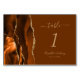 A borda esquerda desta elegante e moderna placa de número da mesa de casamento apresenta uma borda de cor de água laranja queimada, aparada com falsa brilho dourado. O texto personalizável combina manuscritos dourados e fontes itálicas e em chapa em um fundo noz-moscada rico.