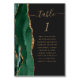 A borda esquerda desta elegante e moderna carta de números da mesa de casamento apresenta uma esmeralda verde aquarela agate borda com falsa brilho dourado. A palavra "mesa" aparece em um guião de escrita manuscrita dourada sobre fundo preto. Adicione os nomes dos seus convidados que estão atribuídos a cada mesa.