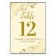 Estes bonitos cartões de números de mesas de casamento apresentam um design simples, mas elegante, com uma caligrafia dourada em um fundo de cor creme ou marfim, com um filigre floral de folha de ouro sujo nos cantos. Maneira perfeita de tornar sua recepção de casamento bonita e ajudar seus convidados a encontrar a mesa certa ao mesmo tempo.