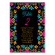 Guie seus convidados com estilo vibrante com este elegante cartão de número de mesa de assentos de casamento de festa. Com uma moldura floral colorida inspirada na arte popular mexicana tradicional, flores ousadas em diferentes cores, como vermelho, amarelo, rosa e turquesa, sobressaem contra um fundo preto rico. O contraste vívido garante que o número da mesa seja fácil de ler, ao mesmo tempo em que adiciona um toque festivo e elegante à decoração da sua recepção. Perfeito para casais que desejam infundir sua celebração com charme cultural, cor alegre e sofisticação moderna e elegante.