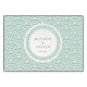 Um belo design com um tradicional seigaiha japonês (literalmente "mar azul e onda") repetindo o padrão. Perfeito para casamentos de praia. O padrão é muito ligeiramente irregular e tem textura texturizada/marcada d'água para impedi-lo de parecer plano demais. A parte de trás do cartão tem uma imagem circular opcional que contém os nomes das noivas e dos grupos e a data do casamento. O círculo e o texto podem ser editados ou completamente excluídos. Esta é uma placa plana para uso em titulares de cartão.