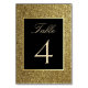 Adicione um toque de luxo moderno à sua recepção com este número de mesa de casamento elegante preto e dourado. Com acentos de brilho chiques e uma simples caligrafia, este design sofisticado traz sofisticação e brilho para a decoração da sua mesa. Perfeito para casamentos glamorosos, formais ou de gala, ajuda a guiar os convidados com estilo enquanto complementa a estética luxuosa da sua celebração.