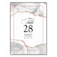 Cartões de número de mesa para casamento em ágata dourada rosa e branca com brilho falso personalizáveis para os detalhes do seu evento.