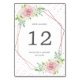 Numeração De Mesa Casamento Floral com Folha Rosa de Ouro Geométrica